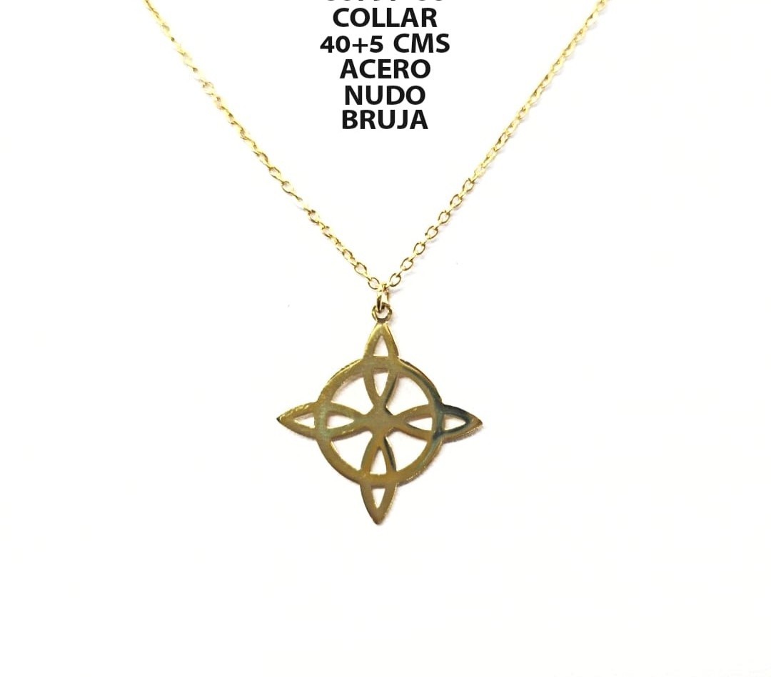 - COLGANTE NUDO DE BRUJA Y CADENA ACERO INOXIDABLE DORADO