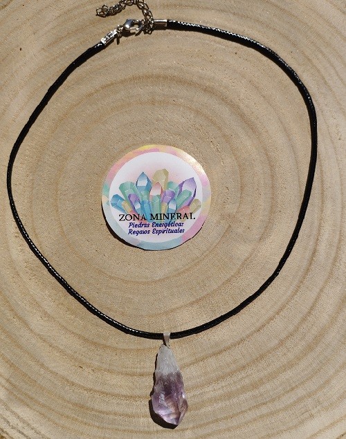 Colgante de punta natural de Amatista y cordón encerado con cierre regulable de bisutería incluido.