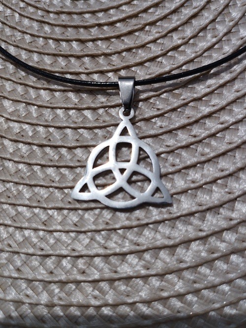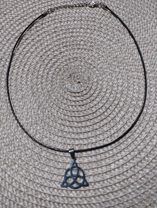 Colgante conforma de Triqueta y cordón encerado con cierre regulable de bisutería incluido.