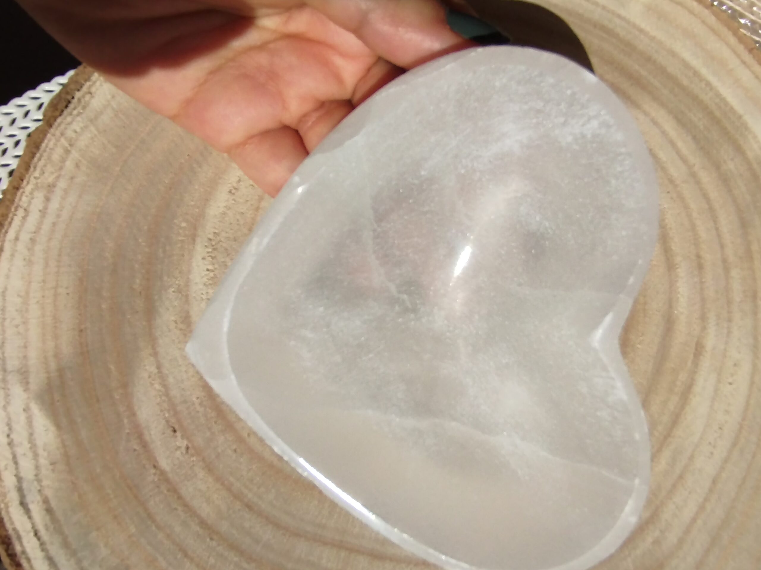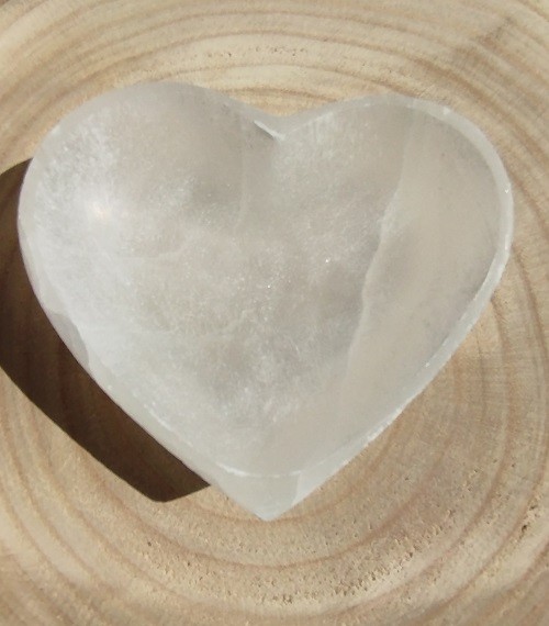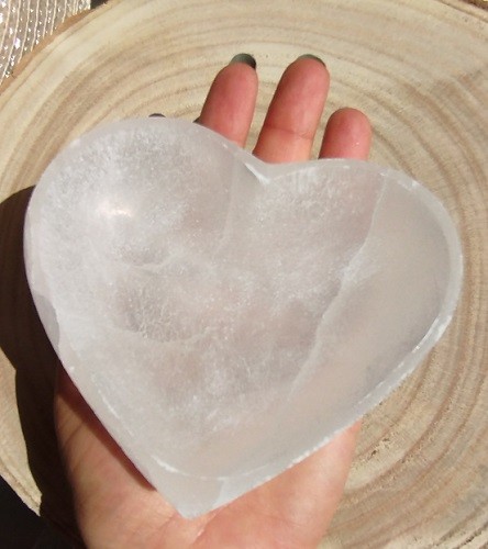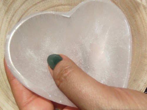 Cuenco macizo de Selenita pulido, con forma de corazón Mod.1.