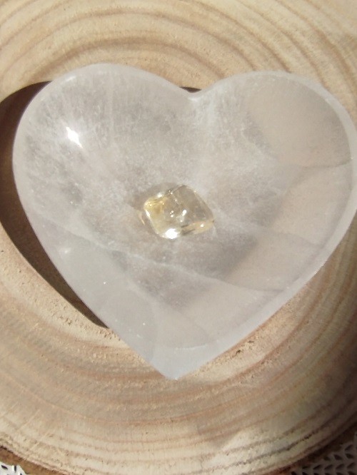 Cuenco macizo de Selenita pulido, con forma de corazón Mod.2.