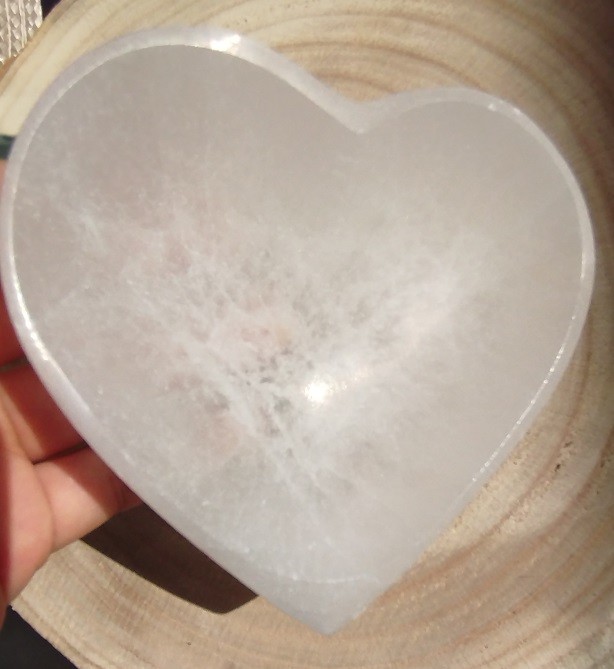 Cuenco macizo de Selenita pulido, con forma de corazón Mod.3.