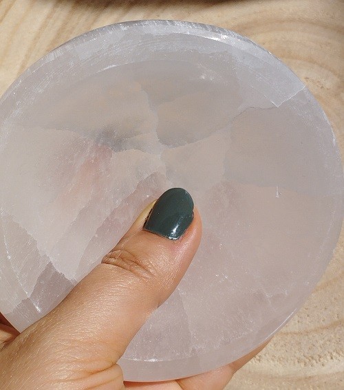 Nota: Evitar el contacto con el agua, la Selenita es un cristal que se disuelve cuando se moja.