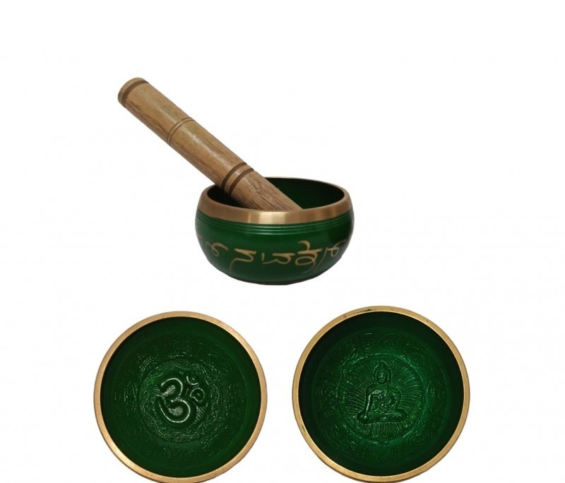 - CUENCO TIBETANO Ø9CM VERDE LETRAS Y FONDO RELIEVE (CON MAZA)