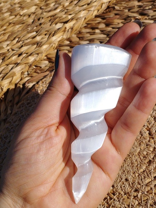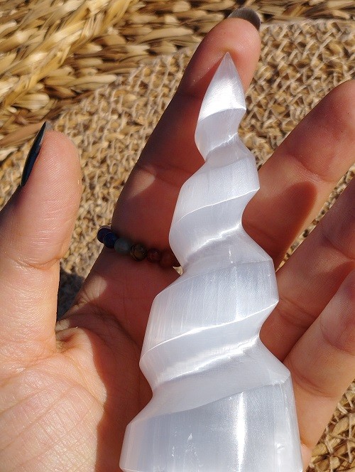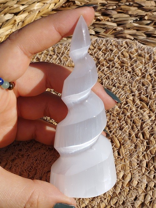 Nota: Evitar el contacto con el agua, la Selenita es un cristal que se disuelve cuando se moja.