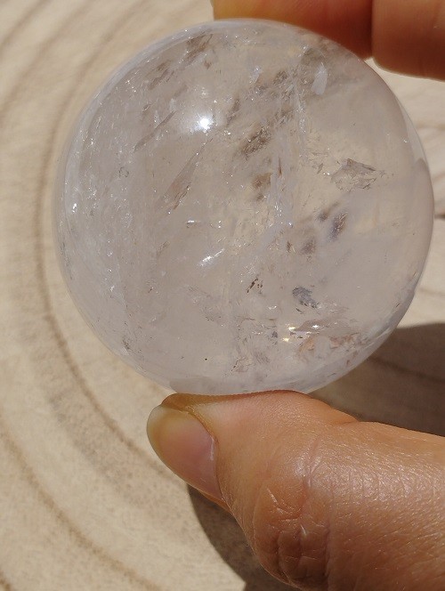 Producto artesanal, tallado a mano, puede presentar imperfecciones y no ser completamente redondeado; zonas transparentes y opacas, cristalizaciones o inclusiones de otros minerales.