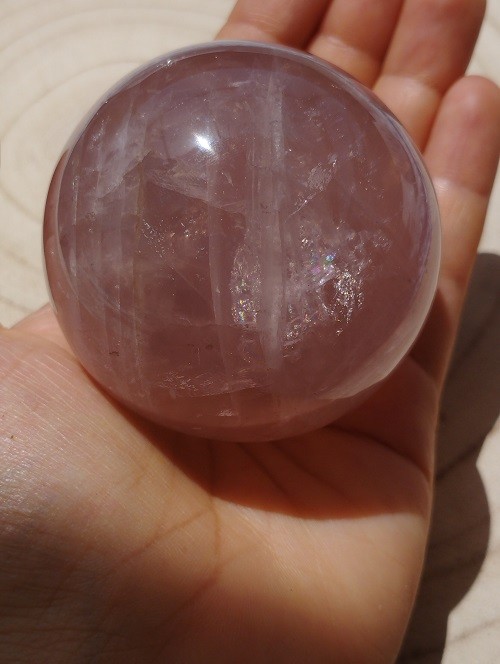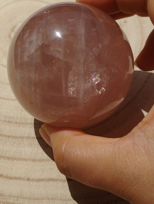 Esfera de Cuarzo Rosa con increíbles arcoíris.