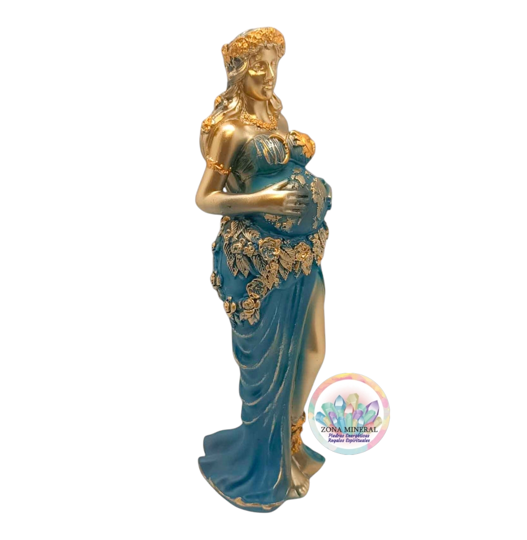 Figura Madre Tierra- Gaia, Dorada con vestido azul.