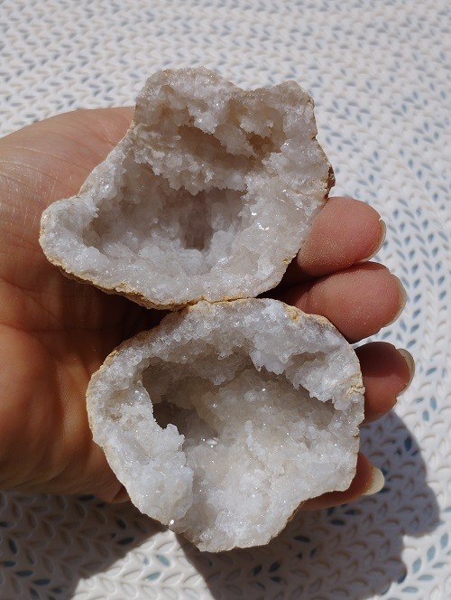 Geoda de cuarzo blanco completa con sus dos mitades.