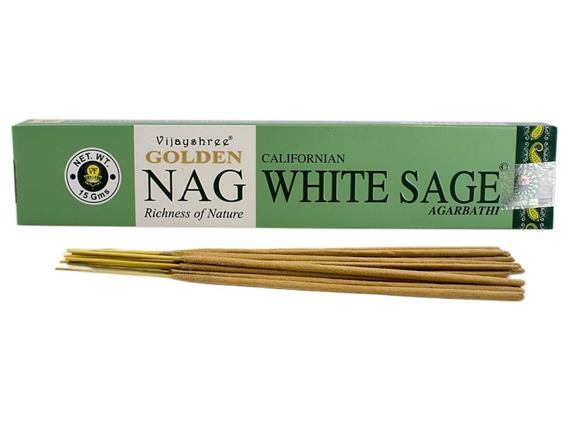 Golden Nag White Sage Incienso californiano tiene como ingredientes principales el Salvia Blanca (Salvia Apiana) que es una planta de la familia de la menta, utilizada como incienso.