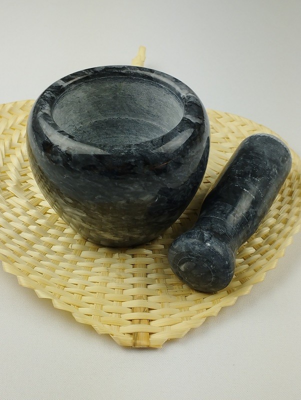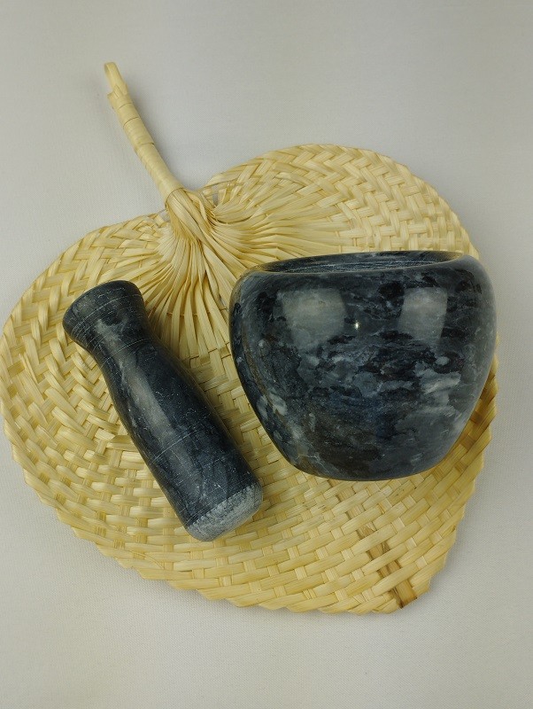 Conjunto dos piezas Mortero y vaso de mortero en mármol pulido.
