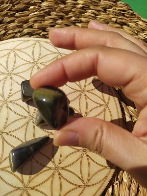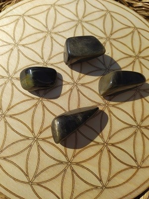 1. unidad de canto pulido mediano de Obsidiana dorada.
