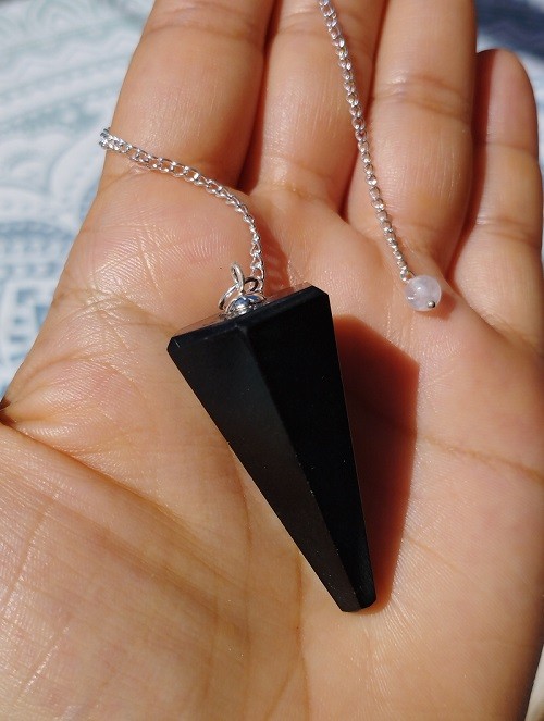 Péndulo artesanal, realizado con piedra natural de Turmalina negra, una de las piedras más poderosas, protectoras y mágicas que existen.