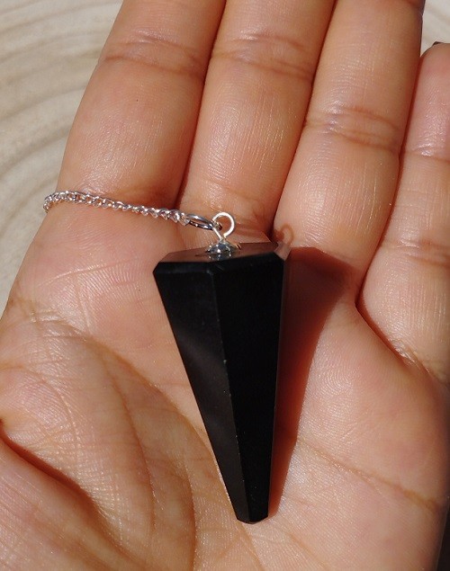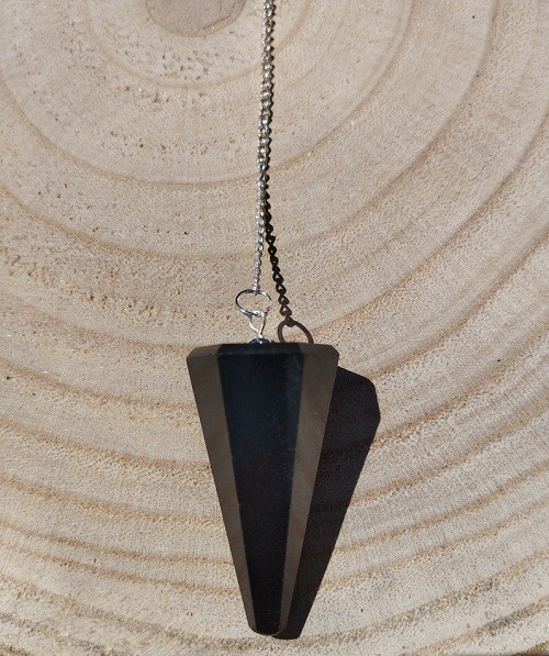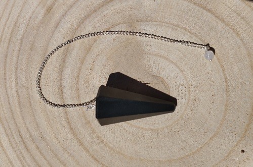 Péndulo mineral facetado de Turmalina negra con cadena.