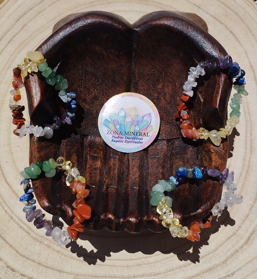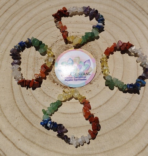 Pulsera elástica, de chips de siete piedras naturales.