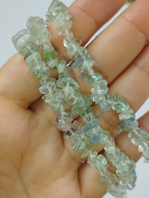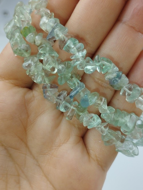 Pulsera elástica, de chips de piedra natural de Fluorita Verde pulida.