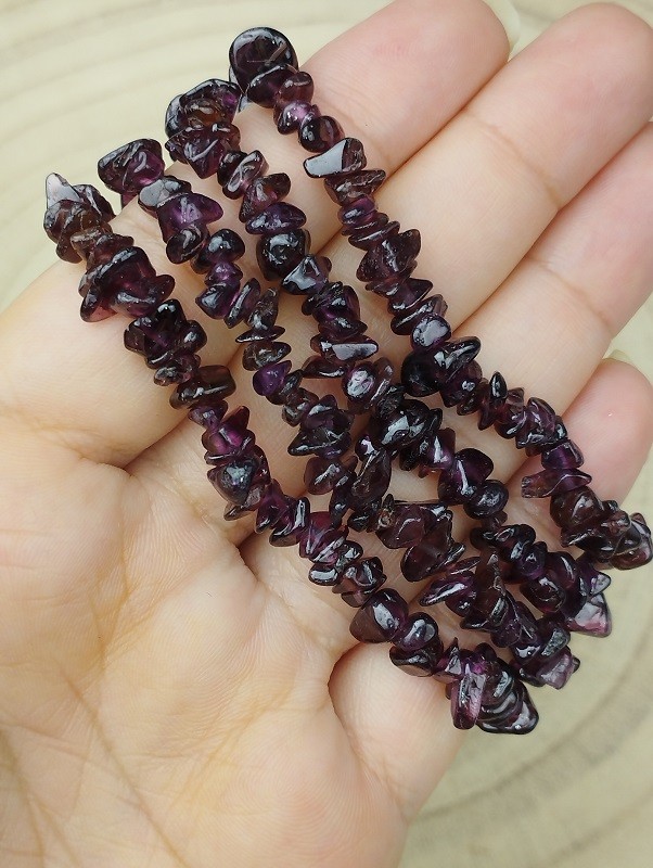 Pulsera elástica, de chips de piedra Granate natural pulida.