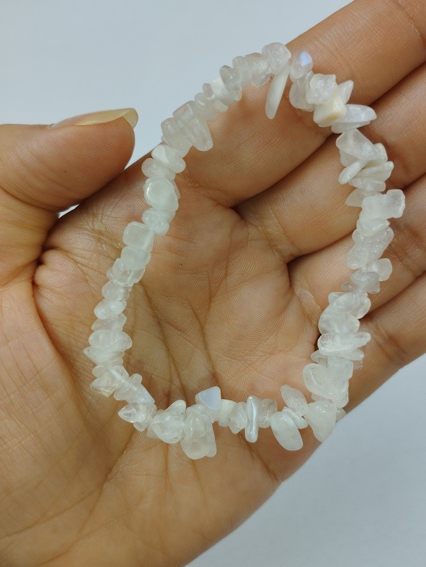 Pulsera elástica, de chips de piedra Luna natural pulida.