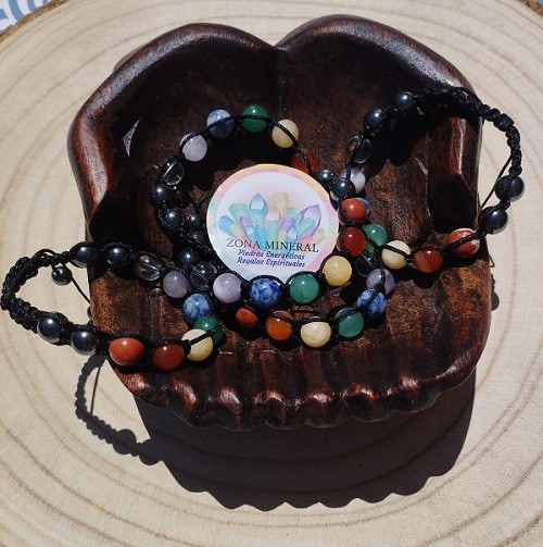 - PULSERA REGULABLE 7 CHAKRAS Y HEMATITE 10mm