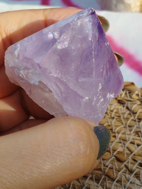 Punta maestra arcoíris de Amatista Semipulida Mod.1 con preciosos arcoirís.