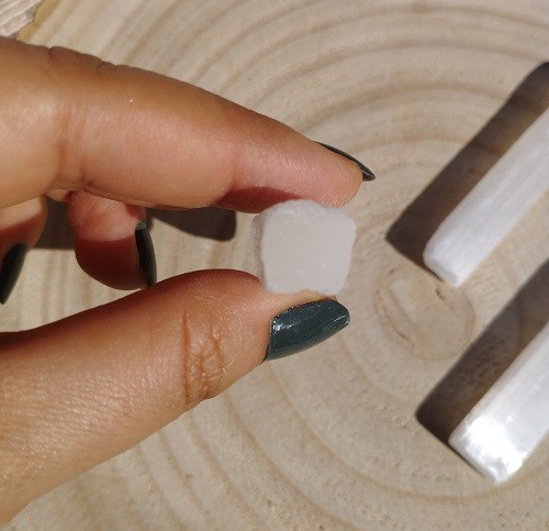 Nota: Evitar el contacto con el agua, la Selenita es un cristal que se disuelve cuando se moja.