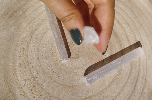 Nota: Evitar el contacto con el agua, la Selenita es un cristal que se disuelve cuando se moja.